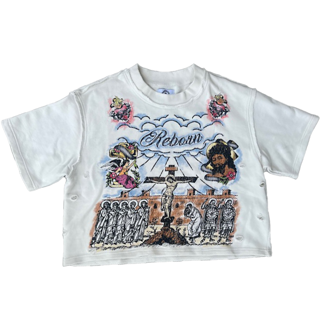 The angels, the clouds, the saints - all stitched into a piece that’s about redemption, growth, and finding light in your own chaos.